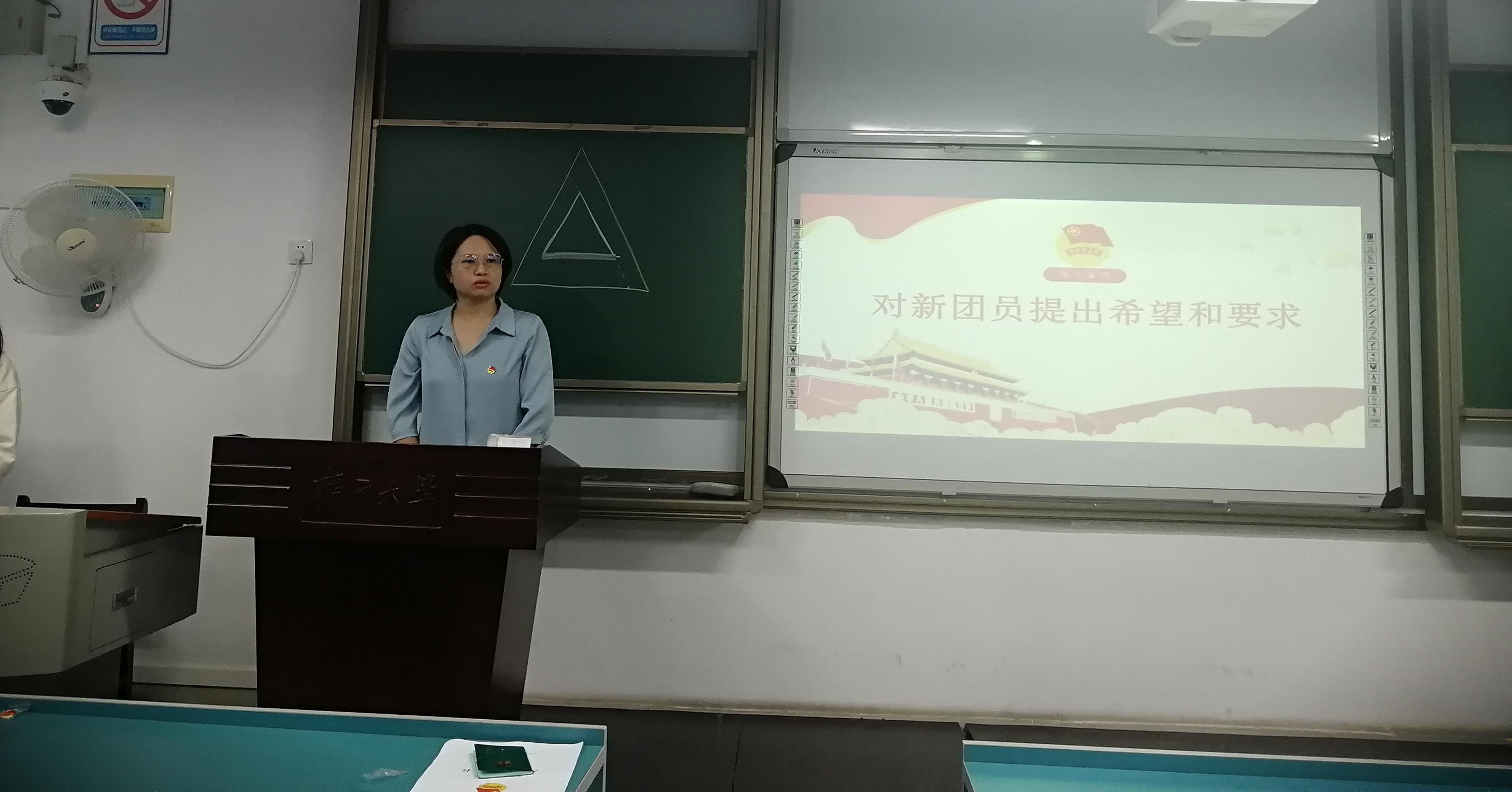 罗波老师对新团员表示了祝贺,并对所有新老团员提出希望和要求。一是坚定理想信念,加强政治理论学习。主动学习、深入领会习近平新时代中国特色社会主义思想,构筑起自身强大的精神支柱。二是练就过硬本领,努力奋斗,把家国情怀落实到具体行动中;三是发挥共青团员的先进性,争做榜样,以自己的实际行动去影响身边的同学,带领身边的同学—起进步。