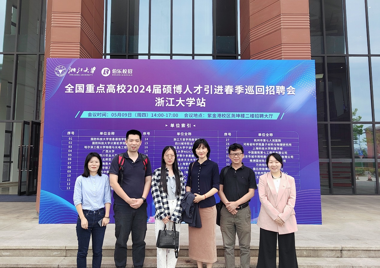 为进一步落实公司2024年人才工作会议精神,以高质量人才队伍建设带动公司高质量发展,5月8日至5月10日,公司经理助理刘坤鹏和院办公室主任伍娟随校人资处赴浙江大学进行博士人才引招宣传。