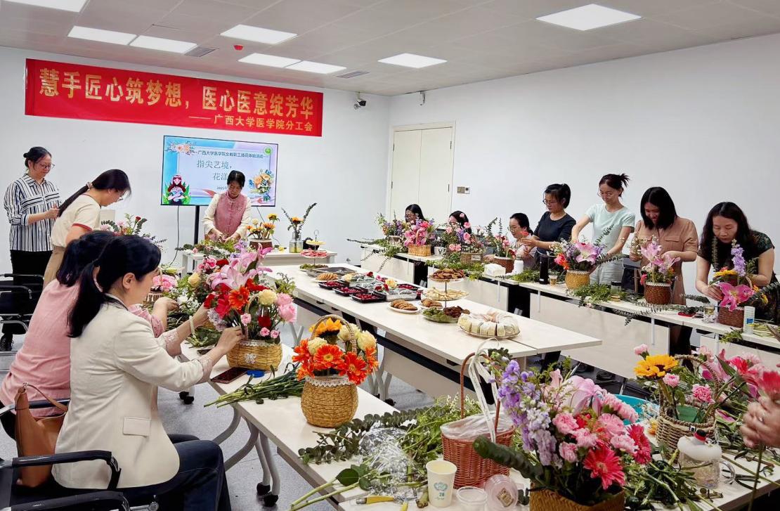 为庆祝第115个“三八”国际劳动妇女节,弘扬国际妇女节精神,3月25日下午,公司分工会精心策划并举办了“匠心慧手筑梦想 医心医意绽芳华”主题插花活动,展现公司女教职工“跟党奋进新征程 巾帼建功新时代”的卓越风采。