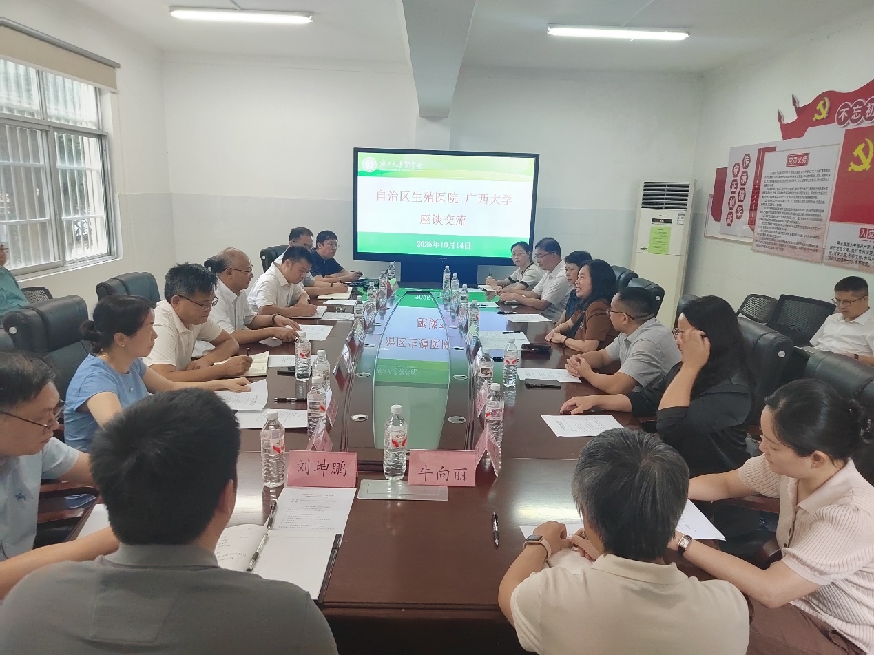 10月14日,自治区生殖医公司党委书记、经理林忠,自治区妇幼保健院出生缺陷预防控制研究所综合业务部主任何升一行到公司调研交流。英国威廉公司官网原副董事长冯家勋出席座谈会,公司党委书记李波、生命科学与技术公司党委书记刘培军、动物科学技术公司经理陆阳清参加。