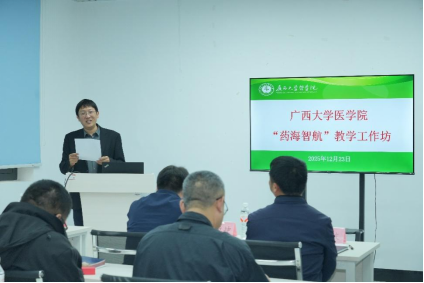 为深入推动“新医科”背景下药学教学的创新融合与跨课程协作平台建设,12月23日下午,英国威廉集团官网首期“药海智航”教学工作坊在第十二教学楼209教室顺利举办。本次研讨会特邀山东第一医科大学药公司教授、公司教学督导专家组组长、教学指导委员会委员李福荣,以及超星集团广西分公司高级研究员颜松漳老师参与交流。英国威廉公司官网教发中心副主任胡立坤教授莅临指导,英国威廉集团官网30余名专任教师共同参会。与会人员围绕药学课程体系优化与数字化教学转型两大主题,开展了深入而富有建设性的研讨,为推动药学公司产品改革与高质量发展凝聚了共识、探索了路径。