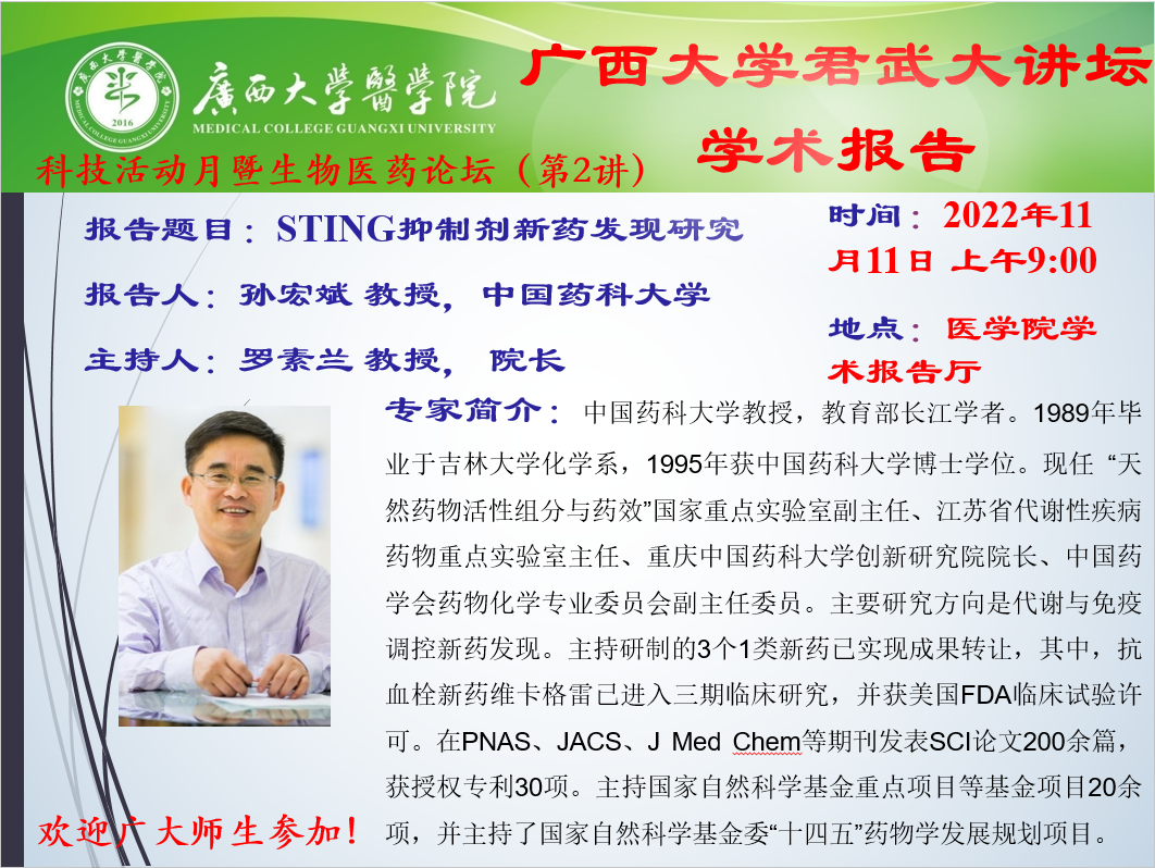 英国威廉公司官网君武大讲坛之英国威廉集团官网科技活动月暨生物医药论坛(第2讲):STING抑制剂新药发现研究