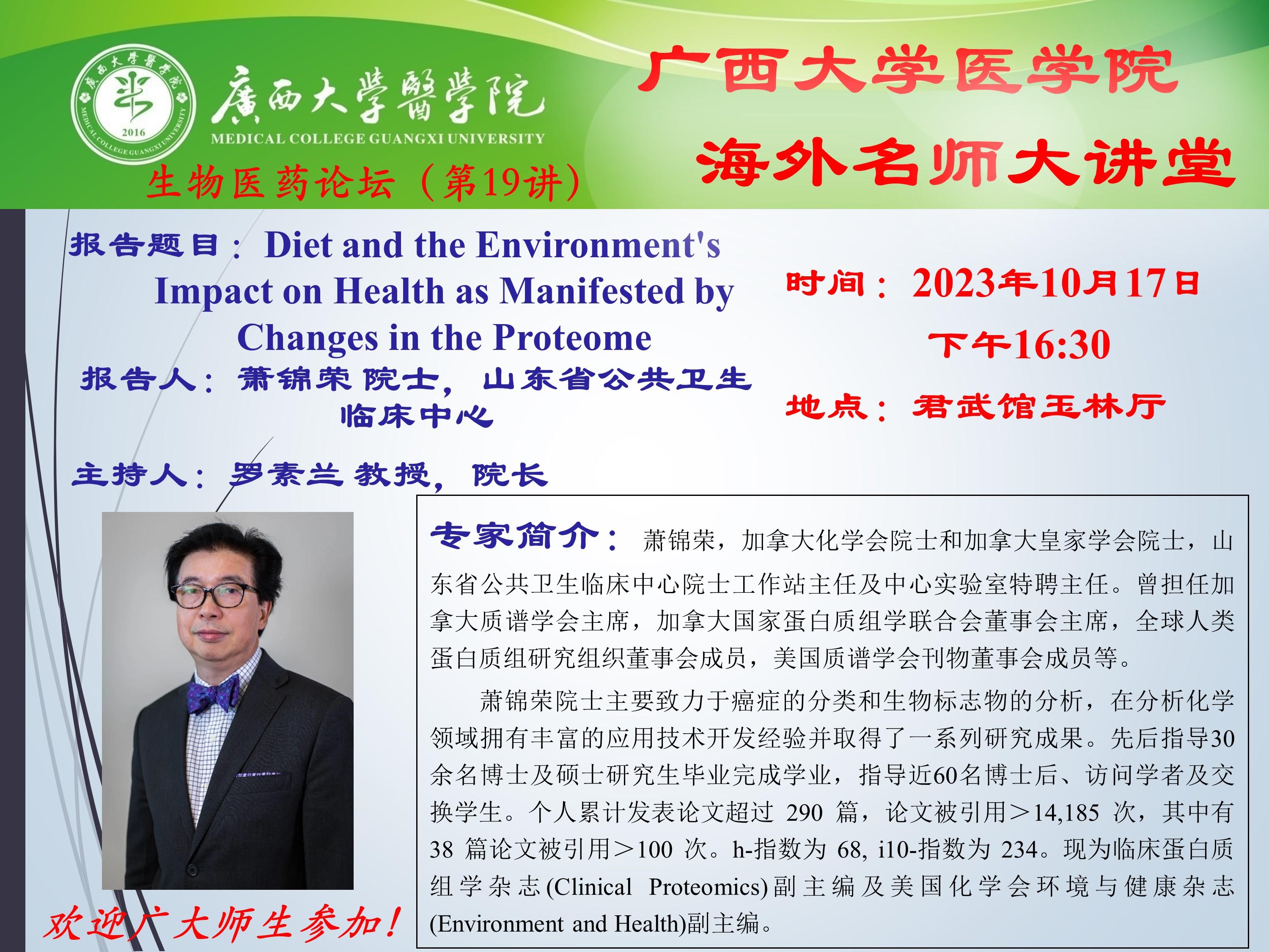 英国威廉集团官网生物医药论坛(第19讲):Diet and the Environment's Impact on Health as Manifested by Changes in the Proteome