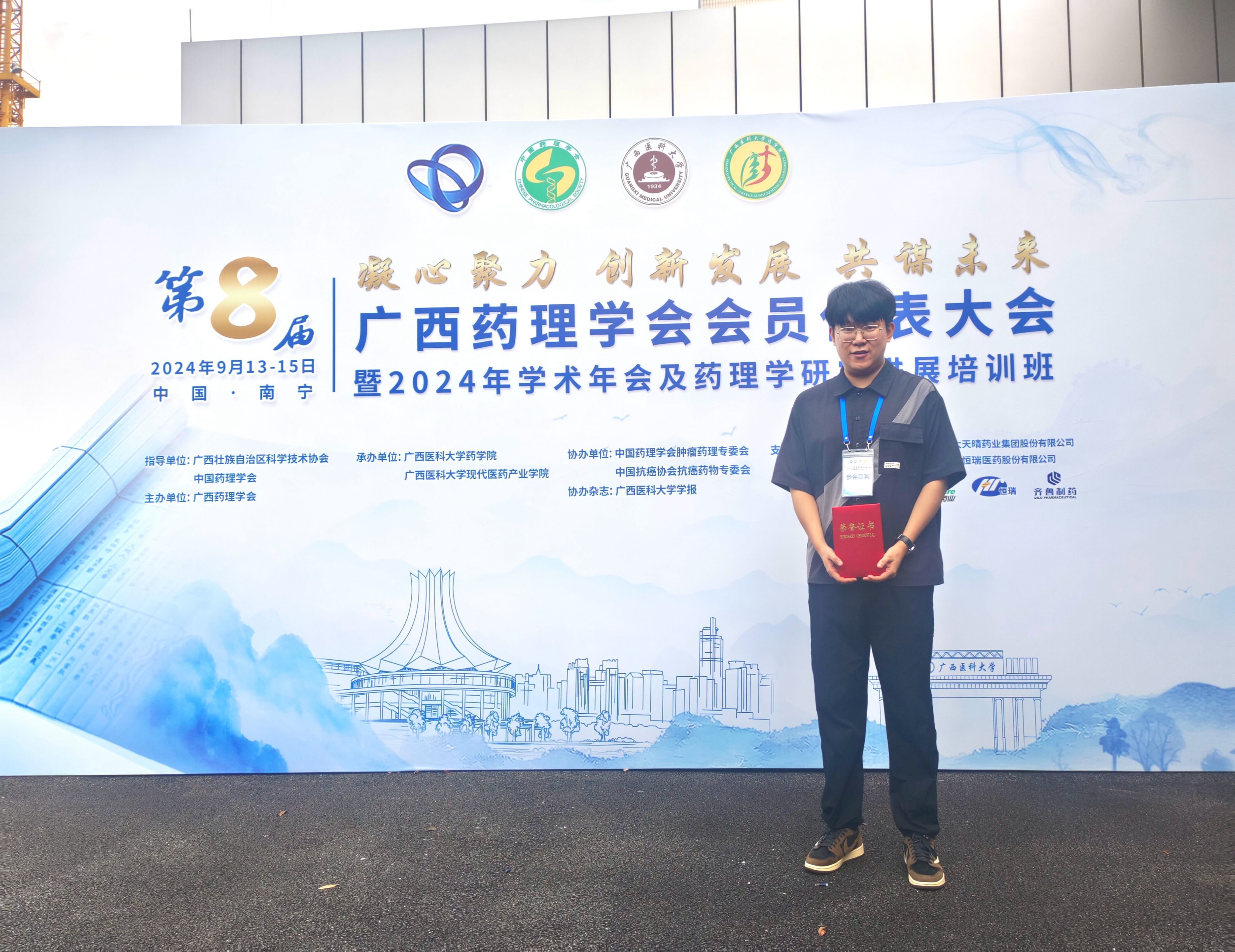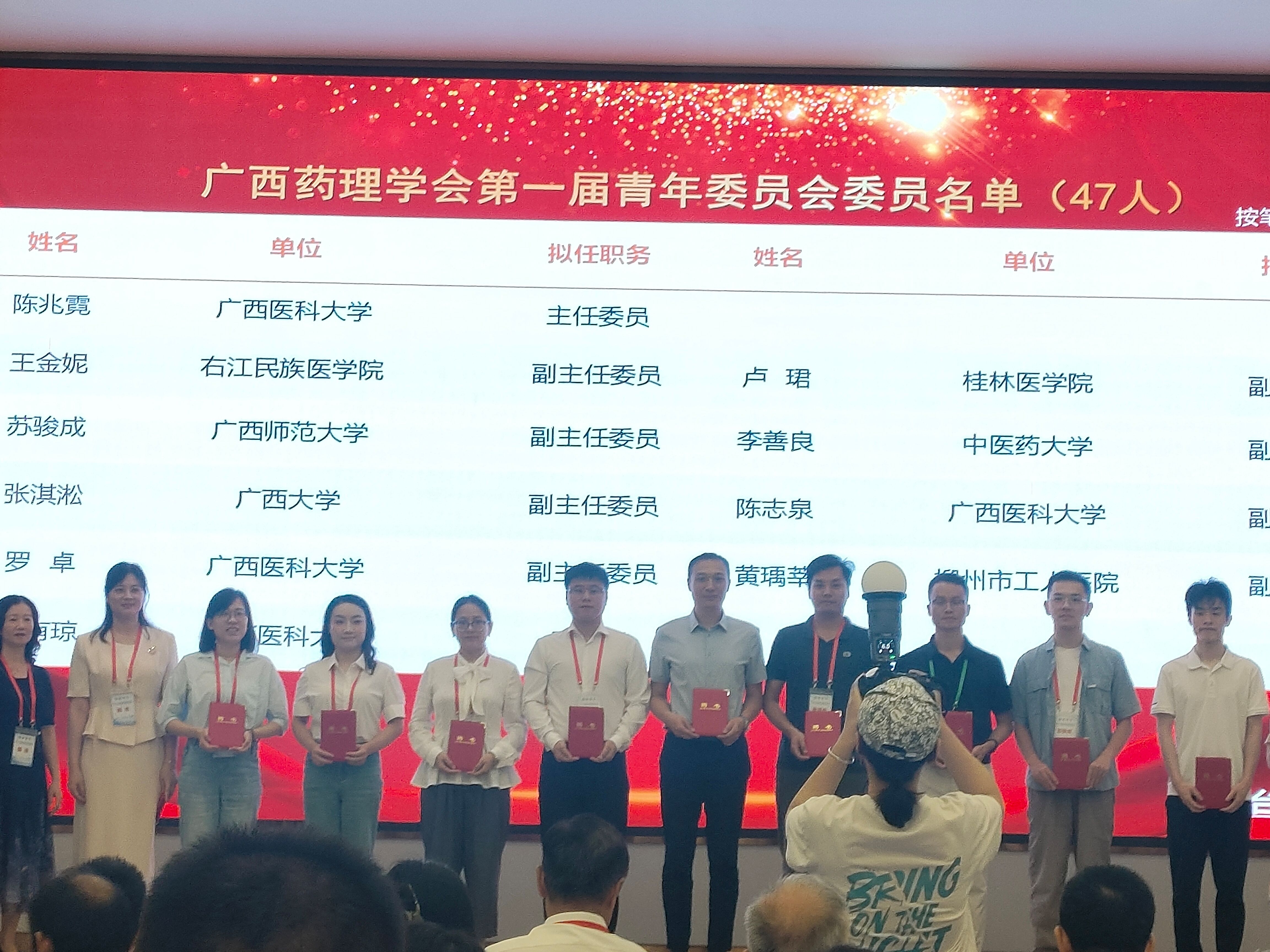 公司师生积极参会,三位青年教师当选为广西药理学会第一届青年委员会委员。其中助理教授张淇淞老师当选广西药理学会青年委员会副主任委员,助理教授朱浩东和杨沛霖老师当选广西药理学会青年委员会委员。参会研究生以墙报形式展示和交流了学术成果,其中22级药学研究生邢浩男同学获得了广西药理学会优秀墙报二等奖。