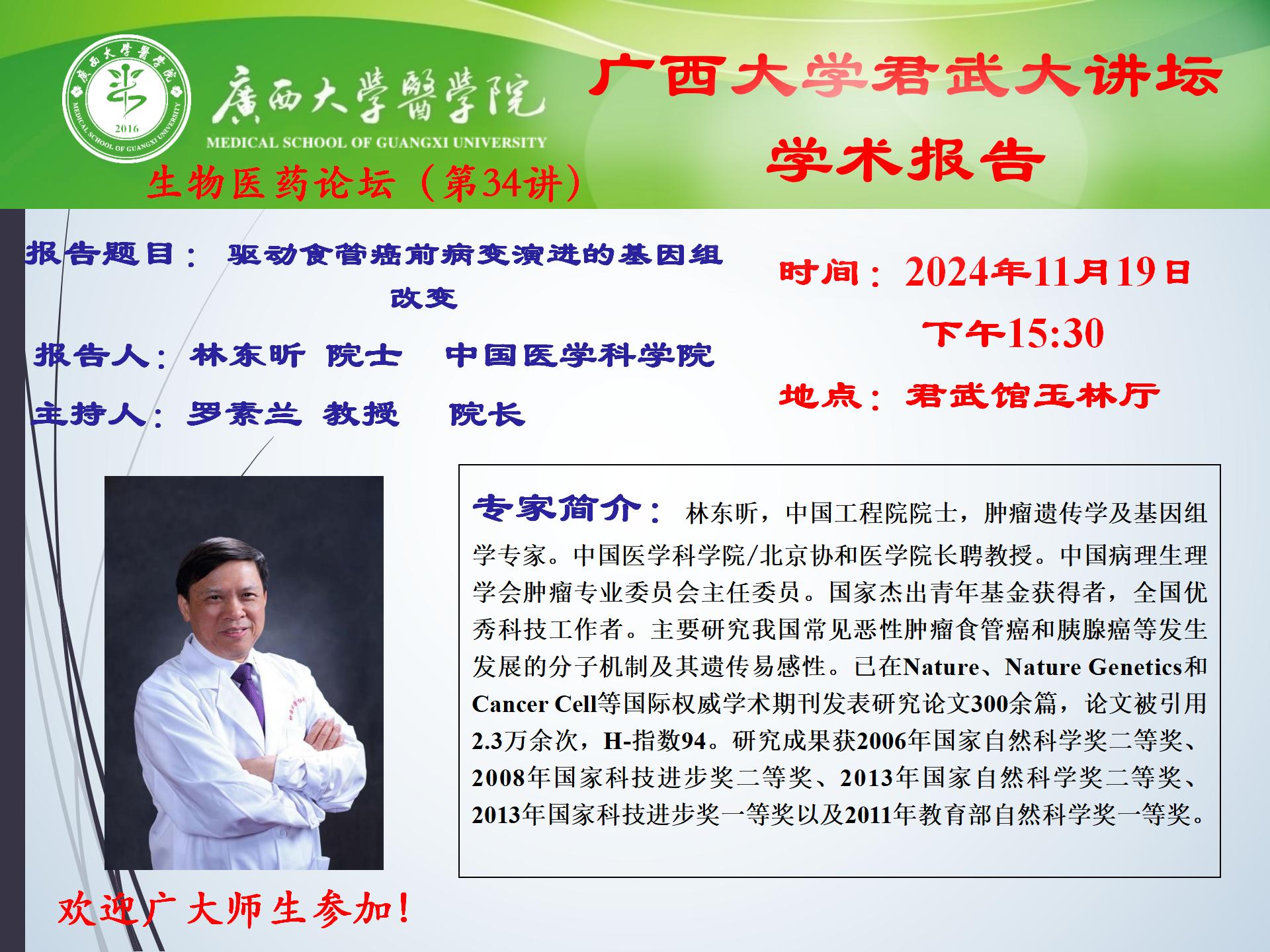 英国威廉公司官网君武大讲坛之英国威廉集团官网生物医药论坛(第34讲)