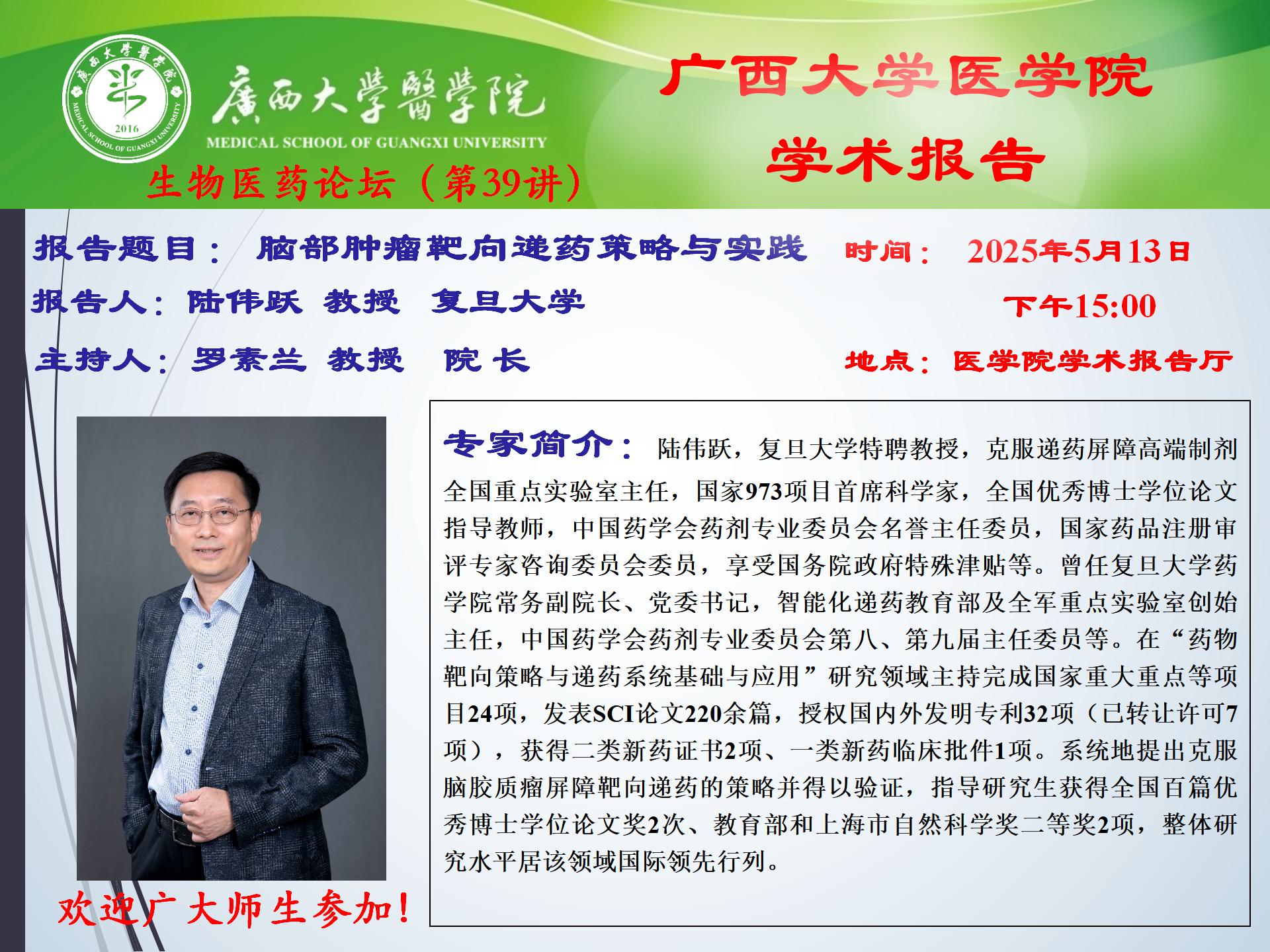 英国威廉集团官网生物医药论坛(第39讲):脑部肿瘤靶向递药策略与实践