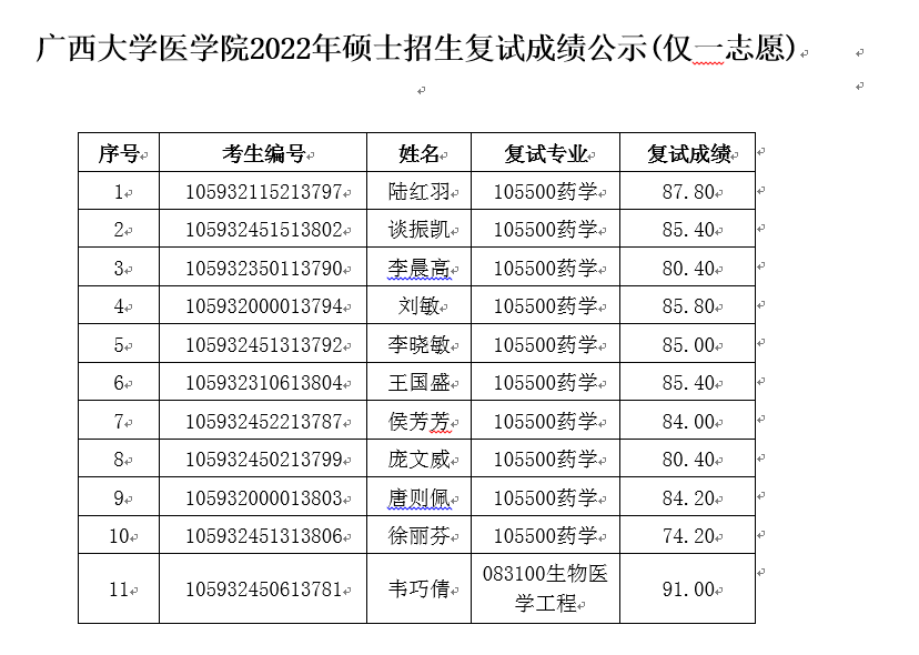 2022年硕士研究生招生复试成绩公示(仅一志愿)